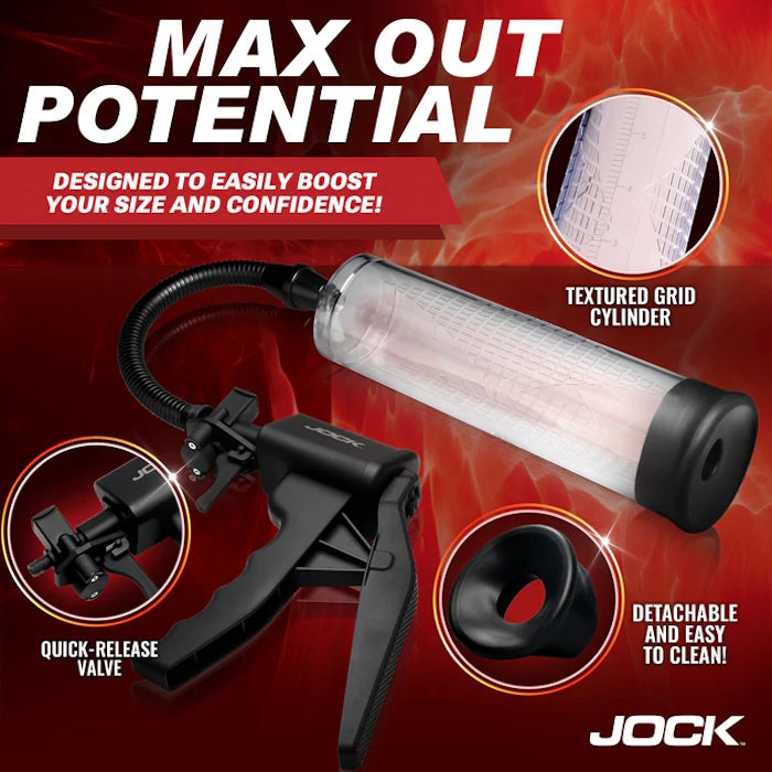- Graduated Cylinder: Measure your gains in real time as you watch yourself get pumped through the clear, medical-grade plastic cylinder.