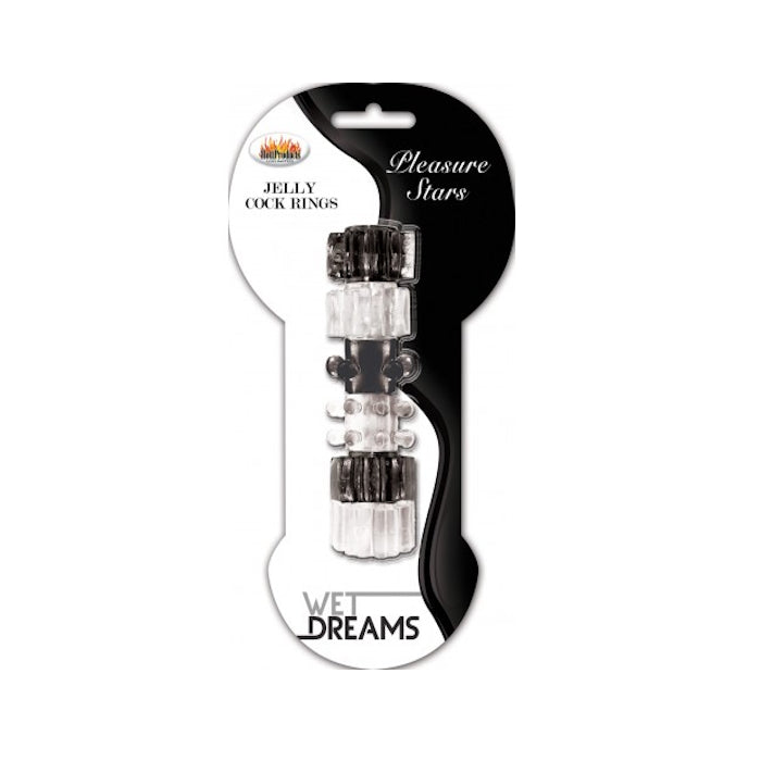Jelly Stars Cock Rings are the "Perfect Fit" to keep you HARD all night long for your next Intimate encounter! Come in black & clear, or assorted colors to tease & please! Super Soft silicone. Stretchy band fits any man!