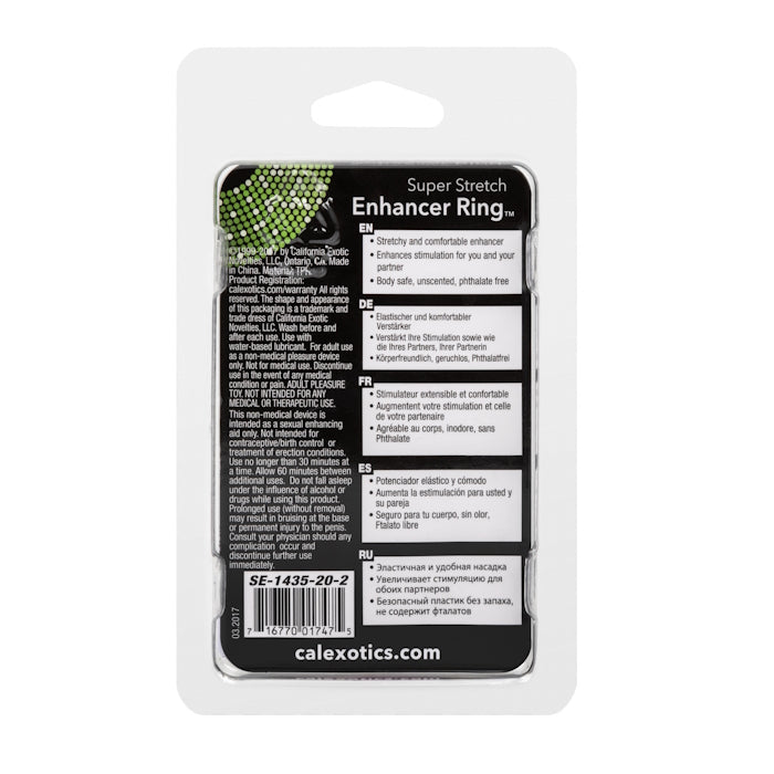 Whether you're seeking to prolong your pleasure or add an extra layer of excitement to your encounters, the Super Stretch Enhancer Ring has you covered. It's the perfect addition to your bedroom adventures, offering both you and your partner an unforgettable journey of intimacy and satisfaction.